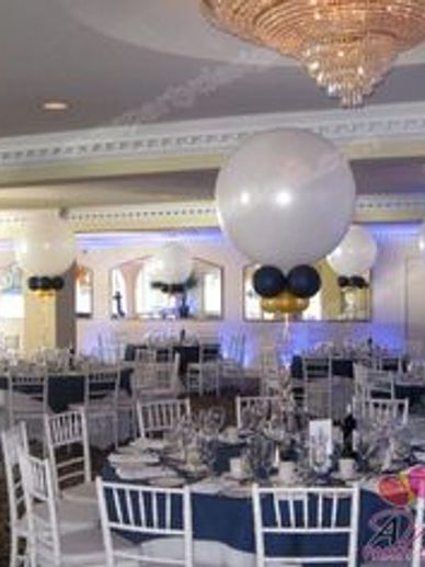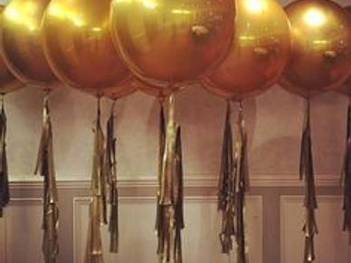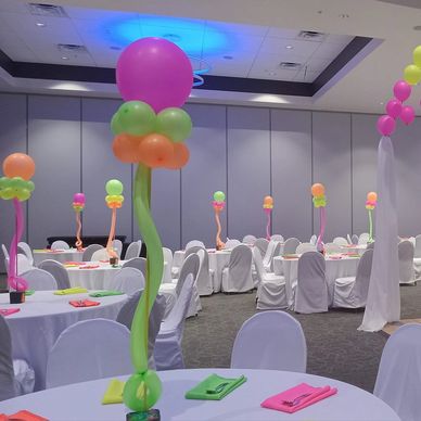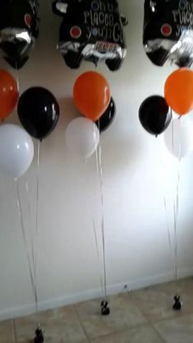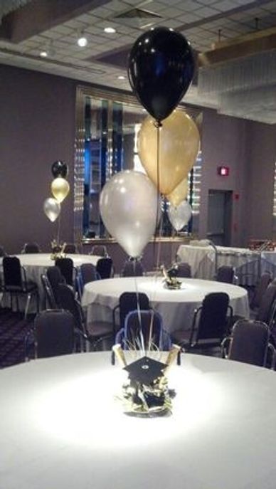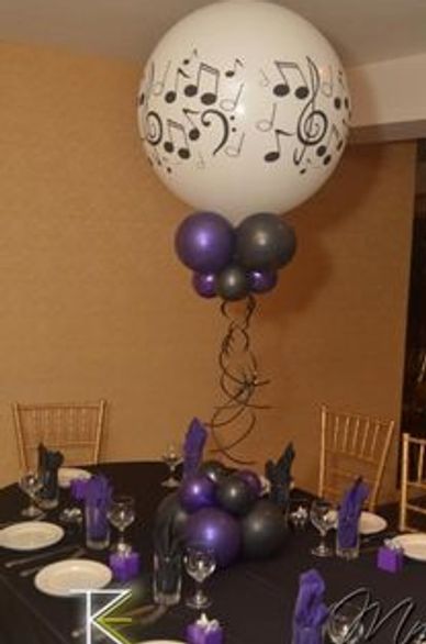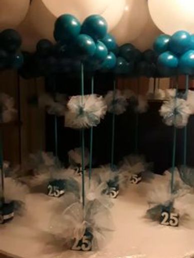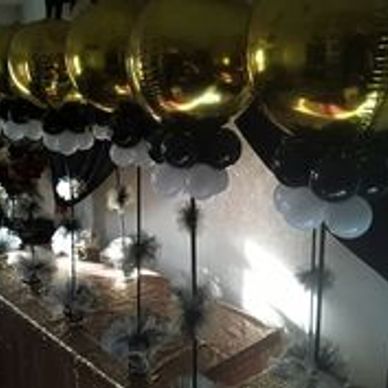Centerpiece 1 foil & 4 latex helium balloons with swirls - $25 You Keep